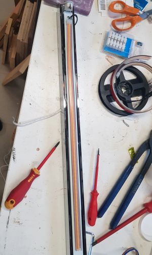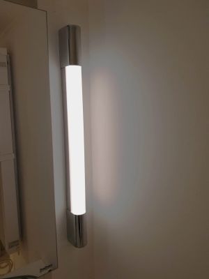 De Ledstrip is in twee geknipt (helft voor elke lichtarmatuur), en op de reflector van de buislamp gekleefd.